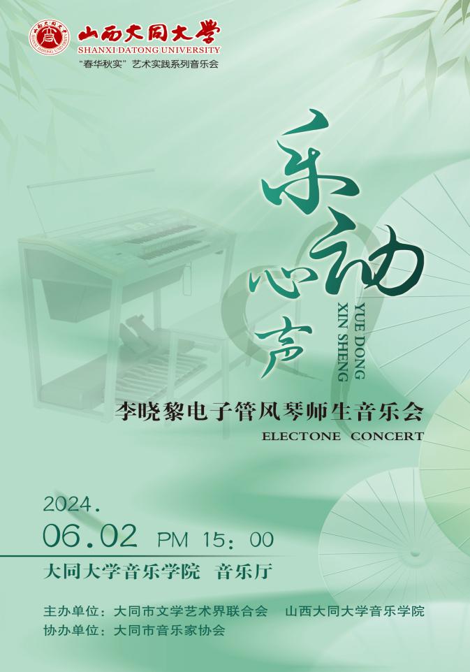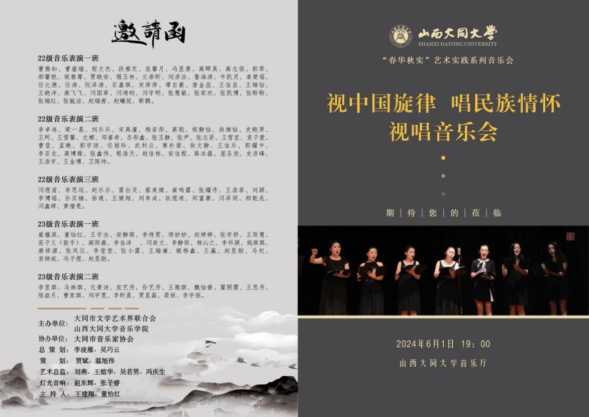 音乐学院近年来围绕建设实践性、应用型、高水平大学目标,践行开门办学宗旨,坚持“五育并举、全面发展”育人理念,持续推进社会艺术实践,加强校地、校企、校校的深度融合,把服务社会,作为学生实习实训与提高就业率的重要举措。每年的五月至六月,是音乐学院师生校内外艺术实践季,今年不仅如期举行了23场2024届毕业生各个专业的毕业展演,还在音乐学院音乐厅推出了“春华秋实”系列音乐会,同时获得山西省音乐家协会、山西省钢琴学会,以及大同市文联、大同市音协的大力支持和宣传推广。系列音乐会的联合主办,不仅激发了学生们的学习热情,提升了广大师生的演奏水平和实践能力,还丰富了大同地区的文化艺术生活,吸引了大同市众多音乐届同行和爱乐者们前来观看,把高雅艺术传递到百姓市民之中,为传承弘扬中外经典音乐文化,提升群众的艺术素养做出了积极贡献。