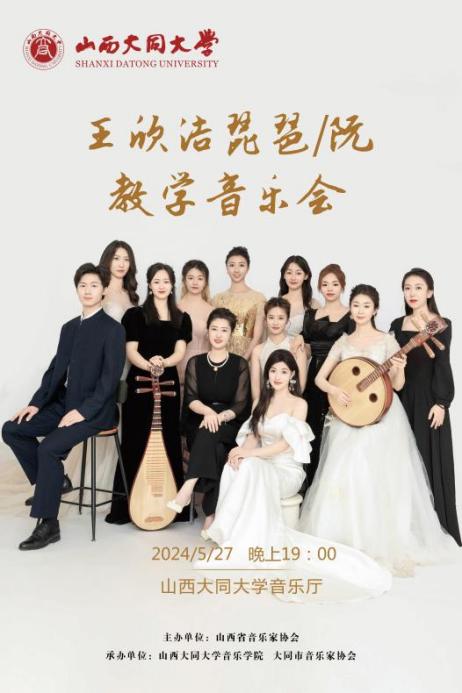 2024年5月27日19点在山西大同大学音乐厅举办了《王欣洁琵琶、阮教学音乐会》。本场音乐会旨在为展示教师和学生共同教学成果,为学生提供一个展示自己的舞台,使他们在演奏过程中获得成就感和自信心,进一步激发他们对音乐学习的兴趣和热情。在音乐会中,观众可以欣赏到各种风格和类型的音乐作品,从而拓宽音乐视野,提高音乐鉴赏能力。