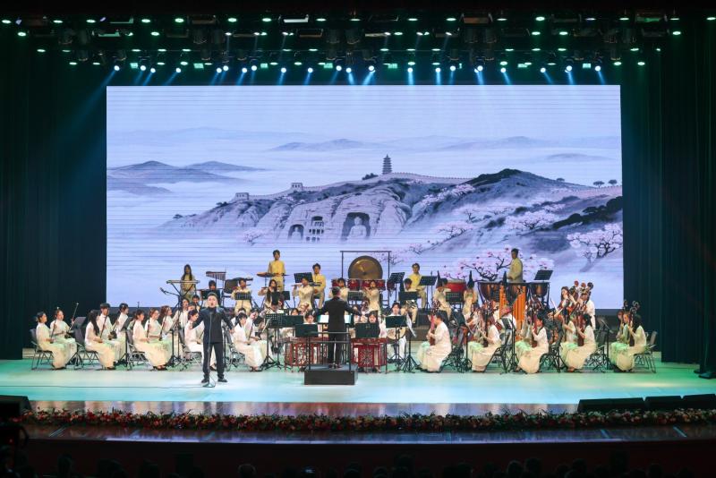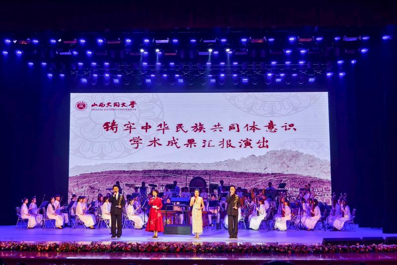 本场学术成果汇报展演,从策划、导演、撰稿、主持、美术设计,到演员、乐队全部由山西大同大学师生担纲,近300名演职人员,在“学”中“思”、“思”中“践”、“践”中“悟”,集中展示教育部全国高校思政原创文化精品项目“云冈之舞”、山西省首届艺术基金资助项目“云冈石窟诗词民族管弦乐”等研究成果,以诗乐舞合一的艺术形式重新演绎沉寂在千百年石刻造像中的古人吟唱,全场观众深受感染,时而屏息观赏,时而掌声阵阵,台上台下融合互动,共同感受震撼人心的云冈力量,深刻领略云冈石窟蕴含的各民族交往交流交融的历史内涵,持续增强中华民族共同体意识。