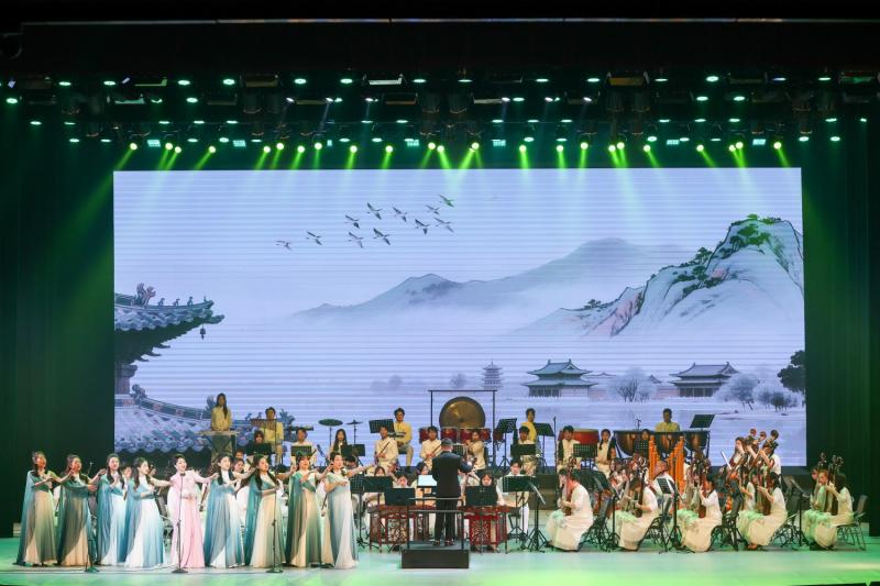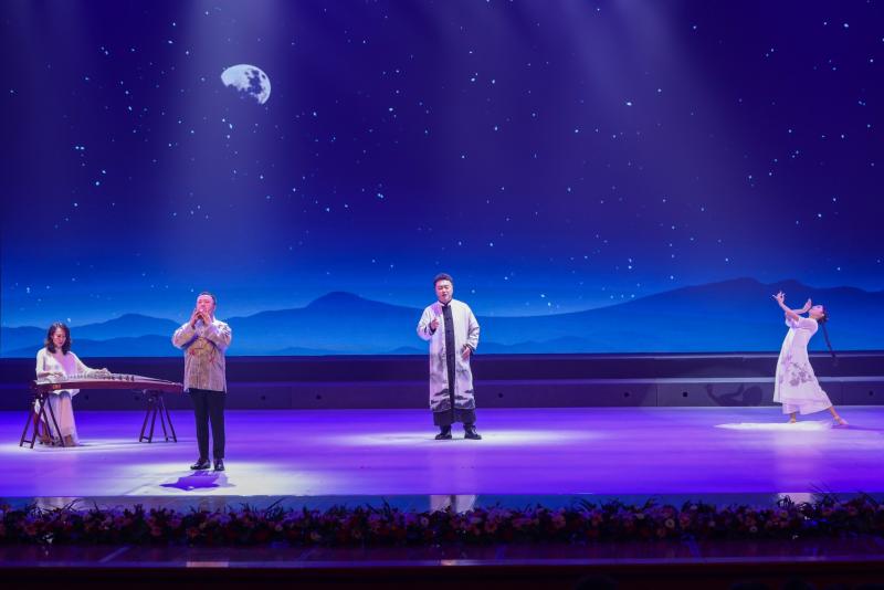 展演共包含14个节目,上半场6首云冈诗歌,是山西省首届艺术基金资助项目“云冈石窟诗词民族管弦乐”的部分成果,均为首次亮相的原创歌曲,伴奏乐队由音乐学院近80名民乐专业的师生组成。男中音独唱《云中天工》、女高音独唱《满江红》、女高音独唱《佛阁梵境》、女高音独唱《石破禅吟》、女声小合唱《畅游云冈》、女高音独唱《重九怀乡》,吟唱著名学者、文人与云冈石窟的动人故事,回望云冈石窟承载的历史记忆。