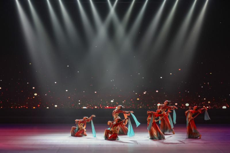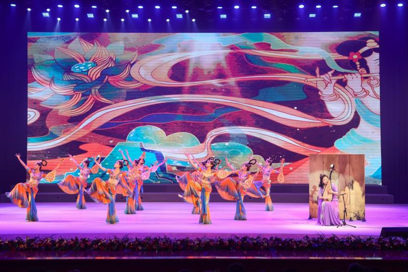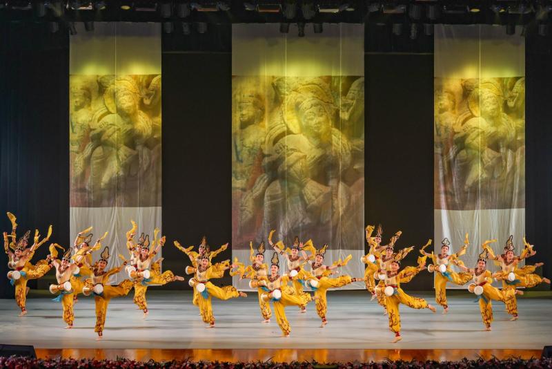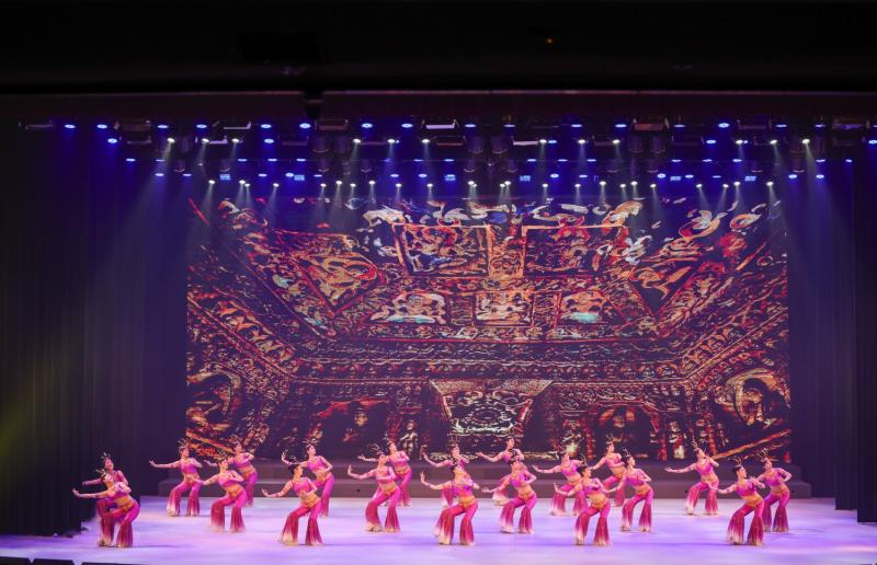 展演下半场有2首民乐原创作品和6部原创云冈舞。琵琶是云冈乐器图像中胡乐器的代表,琵琶独奏《云冈妙音》,力图唤醒石窟中的云冈伎乐,再现曾为华夏音乐注入蓬勃生机的北魏之音。埙是云冈石窟乐器图像中汉族雅乐器的代表,由埙演奏、筝演奏、独唱、独舞组成的节目《关山月》,为观众带来一场穿越时空的对话。舞蹈《北魏雄风》《鼓乐飞天》《六臂神舞》《六黛风华》《束腰鼓舞》《团莲盛景》轮番上演,身着华丽服饰的舞者们,或以其英姿飒爽的身姿、或以其轻盈婀娜的舞步,从千年历史画卷中走出,通过舞蹈语言解构石窟雕刻细节,让观众在沉浸式体验中感受云冈文化的力量。