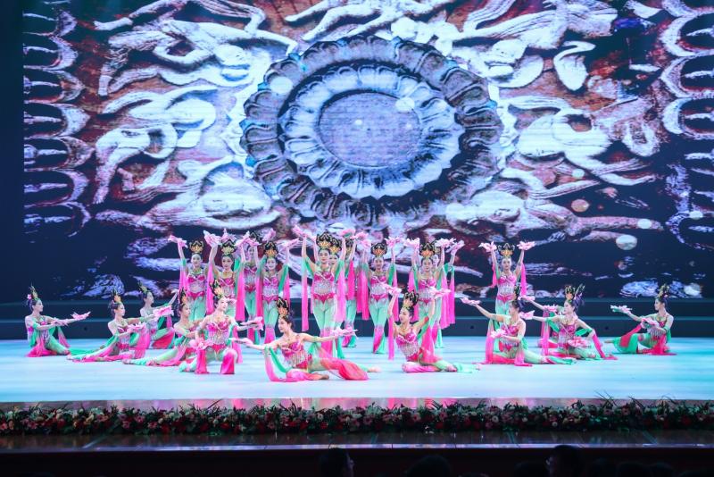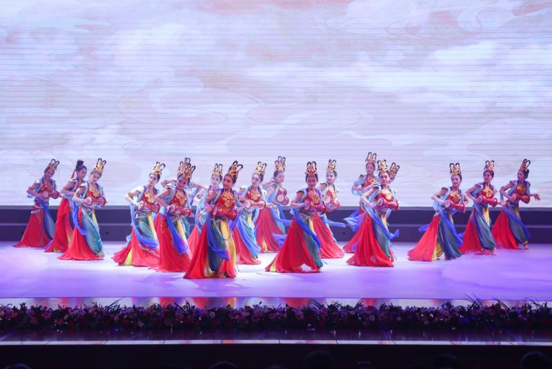 经过近20年的努力,我校在北魏乐舞文化研究、云冈乐舞创编实践以及南北朝时期各民族乐舞文化交流交融研究等方面成果丰硕,组织编写出版山西省“十四五”规划教材《云冈舞基础教程》,填补了云冈舞规范教材的空白;创作云冈交响乐1部、云冈诗词声乐套曲10首,云冈系列舞蹈10部;舞蹈《云冈六臂神舞》《云冈束腰鼓舞》《云冈莲珠纹舞》入选央视节目演出,《云冈六臂神舞》亮相第六届山西文博会,《云冈伎乐天舞》入选中国(青岛)博览会优秀艺术成果展演名录,云冈乐舞让1600年前静默无言的云冈雕像动起来,已经成为学校打造云冈文化的一张名片。